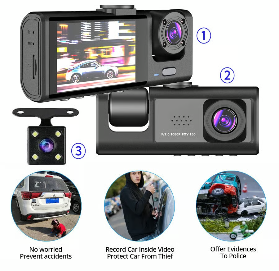 【Three Channel Dash Cam for All-Round Protection】The dashcam built with a 3 channel system, offer 140°Front camera, 110°Cabin Inside the camera, and rear camera. Simultaneously captures video from the front, rear, and cabin of your car as vital evidence for dispute or accident.