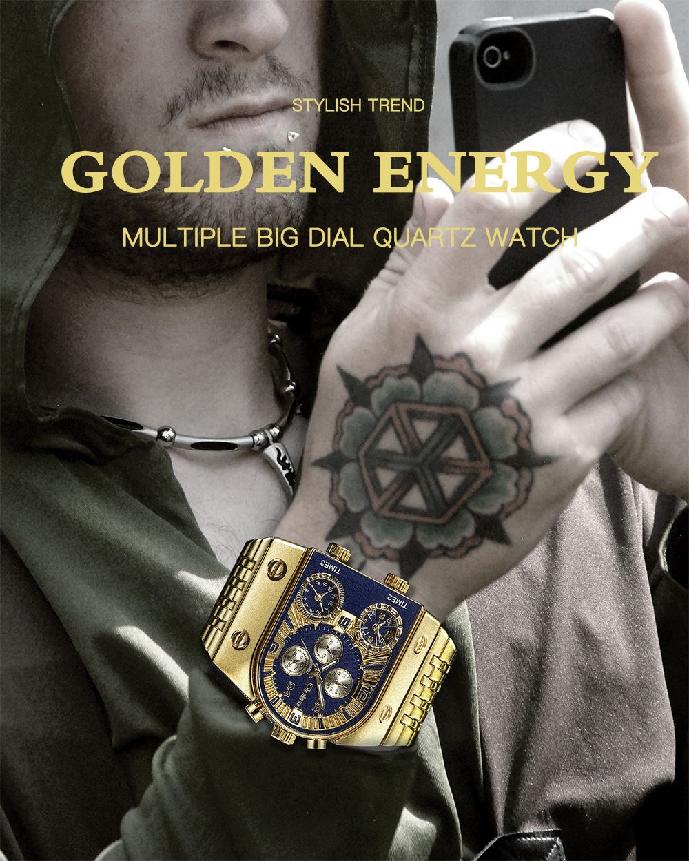 1 * Multi Time Zone Large Dial Men's Quartz Watch