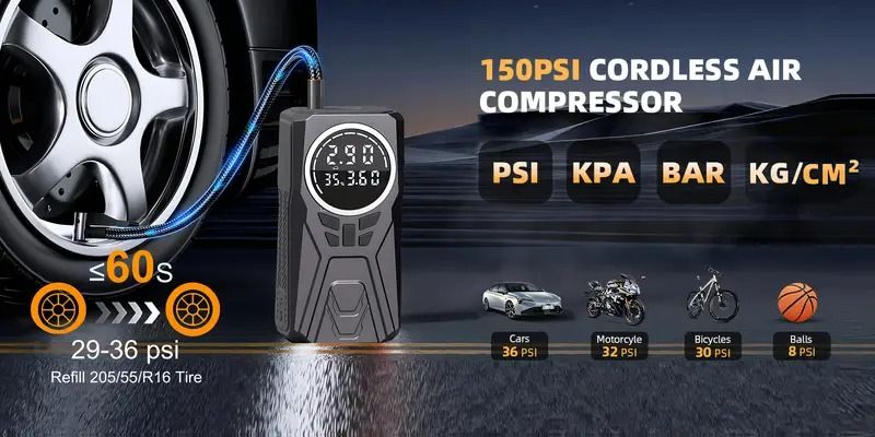 ✨Inflação rápida em 1 minuto✨Mini insuflador de pneus portátil adequado para automóveis e motos 🚗🏍️